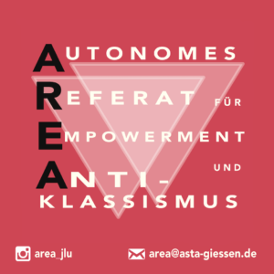 Bis jetzt waren wir erfolgreich mit der Einführung eines Sprechstundenangebots, spannende Vorträge und die Einrichtung eines aktiven Instagram Kanals (@area_jlu), um euch auf dem Laufenden zu halten. Für die Zukunft haben wir noch einiges mehr auf Lager: weitere Vorträge, ein Lesekreis und ein regelmäßiger Stammtisch sind in Planung. Kontaktiert uns gerne unter area@asta giessen.de oder schickt uns eine DM auf Instagram!