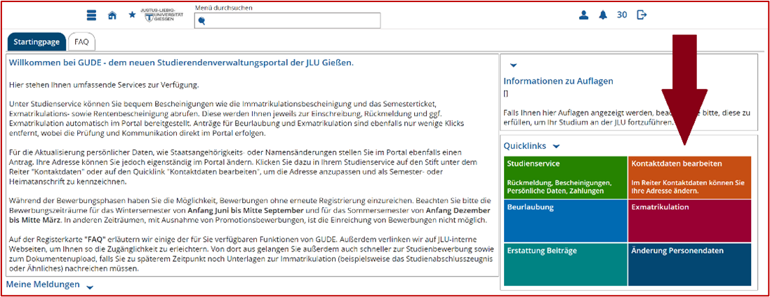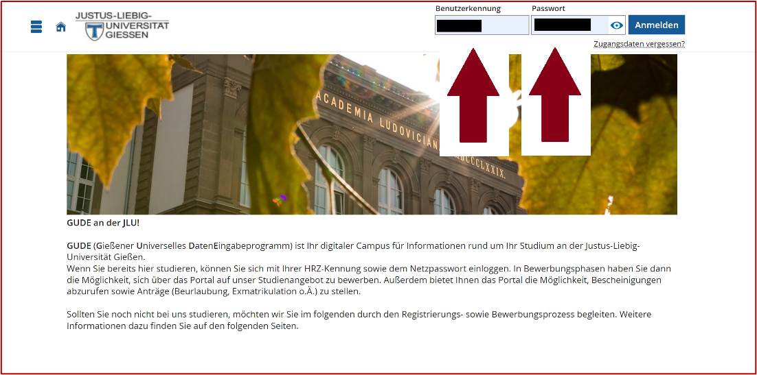 1. Besuche das GUDE-Online-Portal der JLU: https://gude.uni-giessen.de/