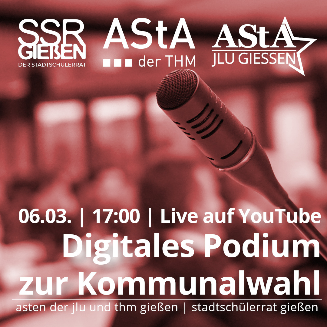 Studierende und Schüler:innen machen einen besonders großen Teil der Gießener Stadtbevölkerung aus. Parteien und Listen, die in diesem Jahr zur Kommunalwahl für die Stadtverordnetenversammlung antreten, sollten sich deshalb in besonderem Maße mit den Interessen von jungen Menschen auseinandersetzen und ein attraktives Angebot für diese Wähler:innengruppe bieten. Um den antretenden Listen zu verschiedenen Themen, die jungen Menschen in Gießen wichtig sind, auf den Zahn zu fühlen, haben die Allegemeinen Studierendenausschüsse der THM und der Justus-Liebig-Universität in Kooperation mit dem Stadtschüler:innenrat Gießen eine digitale Podiumsdiskussion mit einigen Parteien und Listen organisiert, die am Samstag um 17 Uhr auf dem YouTube-Kanal des AStA der JLU zu sehen sein wird. Die Veranstaltung zielt darauf ab, trotz des digitalen Formats möglichst viele Schüler:innen und Studierende in die Debatte miteinzubeziehen. So hat die Einladung der Parteien und Listen schon auf Basis von Umfragen innerhalb dieser Gruppen stattgefunden. Auch während der Diskussion können Fragen über das Instagram-Profil des AStA der JLU und den Livechat in YouTube in die Debatte eingebracht werden.